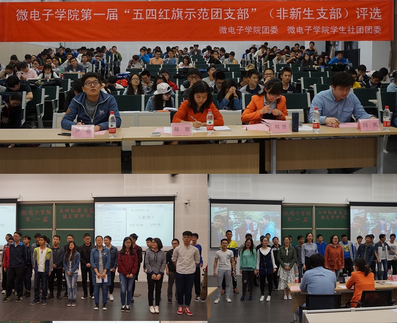 本站讯(通讯员 尹明)4月14日晚,“青春集结号,最美五四季” 微电子学院第一届“五四红旗示范团支部”(非新生支部)评比活动在北洋园校区44楼B112举行,一二年级各团支部200余名团员共同参与。学院党委副书记陆丽及三位辅导员担任教师评委,大一各团支部30名团员代表担任学生评委。