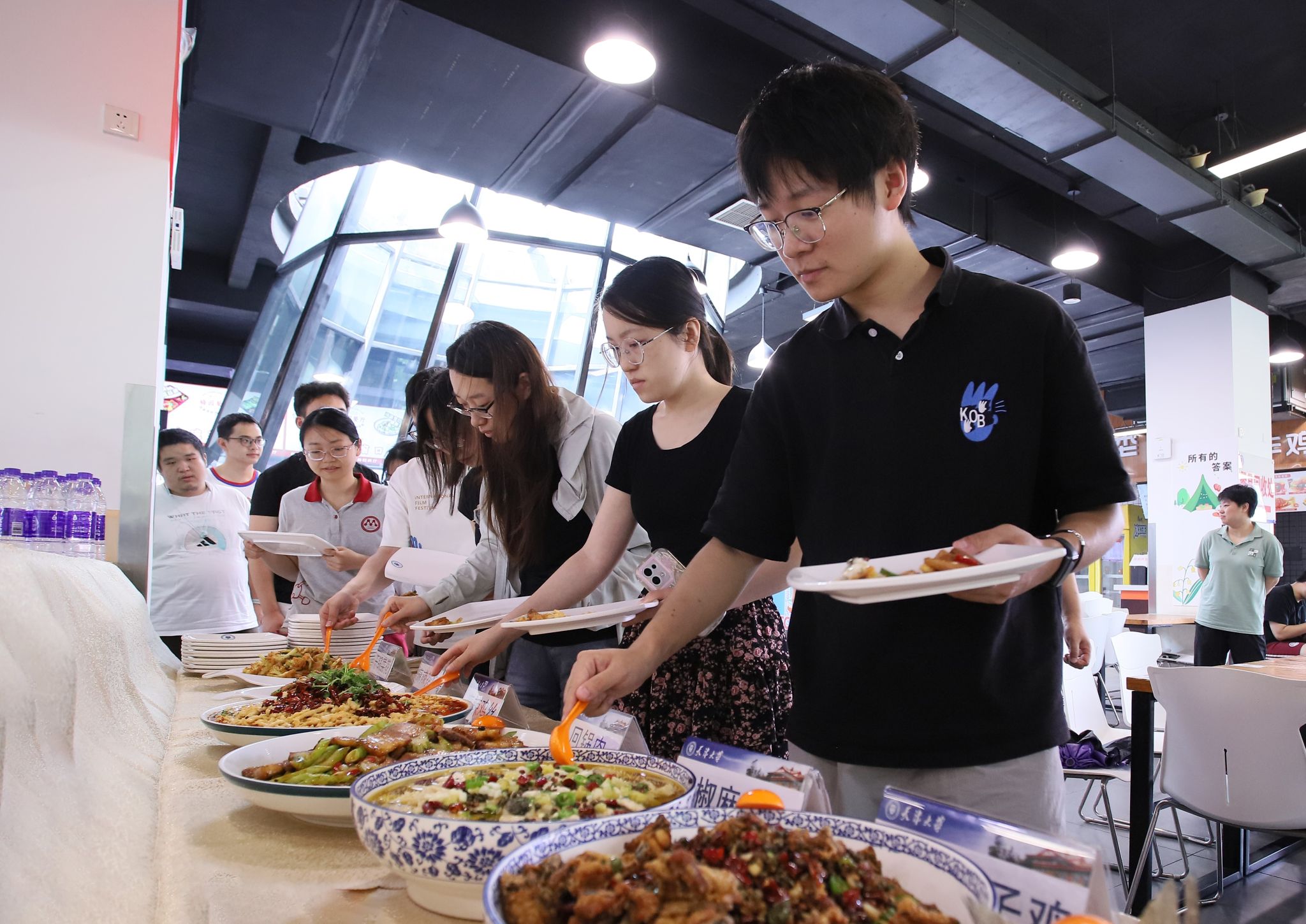红亮似火的红油裹着嫩滑的肉片,酸香爽脆的泡菜在舌尖跳起舞,麻辣鲜香的滋味在口腔里绽放……在试吃品鉴环节,“美食评审员”们从色、香、味、形等多个方面对14道家乡菜品进行了认真全面、公正客观的品尝和评价。“这道豆花鱼真安逸!”“香辣虾的味道正宗!”“麻辣鸡丝很嫩,不腥,巴适!”“蒜泥白肉的料汁香惨了!”活动现场气氛热烈欢快,大家一边大快朵颐,一边畅所欲言,与身旁的同学们交流着意见和感受,并通过现场设置的“活动建议二维码”将最直观、真切的味蕾体验转化为一条条建议详细记录下来。过程中,参与活动的厨师们也来到评审员身边展开座谈,师傅们悉心聆听同学们对菜品的点评,为后续菜品调整、提升服务提供参考。当听到有同学夸赞自己烹饪的菜品味道正宗时,师傅们也会难掩喜悦,将开心与自豪通通写到脸上。梅园餐厅的王师傅说:“同学们的建议非常中肯、非常宝贵,也为我们菜品改良、提升服务指明了方向。”