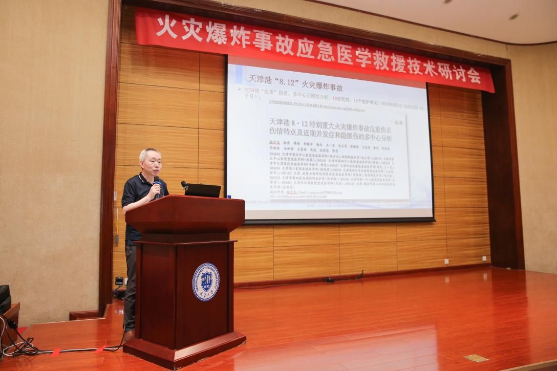 在下午的主题报告环节重点研讨了由科技部立项,以天津大学为牵头单位,联合清华大学、北京大学人民医院、应急总医院、中国人民解放军总医院、应急管理部大数据中心、应急管理部天津消防研究所等10家单位共同承担的国家级新利18网址登录