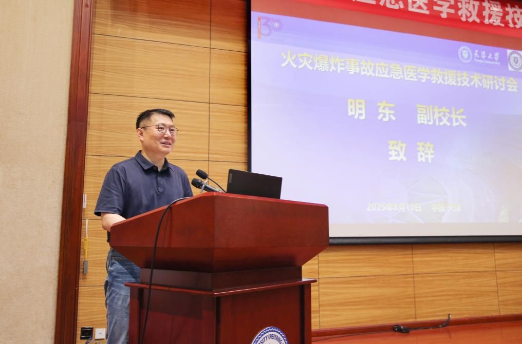 开幕式上,天津大学副校长明东致辞指出,火灾爆炸事故的突发性、破坏性与复杂性对人民生命健康构成严峻威胁,提升应急医学救援能力是国家重大需求。作为“双一流”建设高校,天津大学2018年成立医学部,坚持“医学牵引、工程支撑、转化创新、临床示范”理念,推动“医工融合”新发展;卫生应急学院聚焦应急医学体系建设,在人才培养、关键技术攻关等方面成效显著。学校将持续汇聚多学科优势,深“产学研用” 融合,为应急医学事业贡献力量。