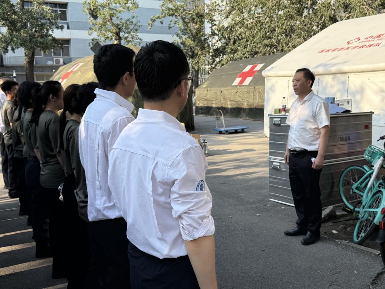 仪式上,天津大学卫生应急学院党委书记庞博首先致辞。他提到,天津大学卫生应急学院多年来承担了众多国内外重大突发事件医疗应急任务,在一次次实战中积累了丰富经验,也锻造出一支专业过硬的队伍。此次与二七二医院携手成立这支紧急医学救援队,离不开天津市卫健委对我们的信任和托付,这既是一份沉甸甸的责任,更是我们共同推进应急医学事业的重要契机。天津大学卫生应急学院将充分发挥自身在卫生应急领域的专业优势,与天津二七二医院紧密协作,为救援队队员们提供系统、全面、实用的培训内容,助力队员们提升救援技能和处置能力,为保障人民群众的生命健康安全贡献力量。