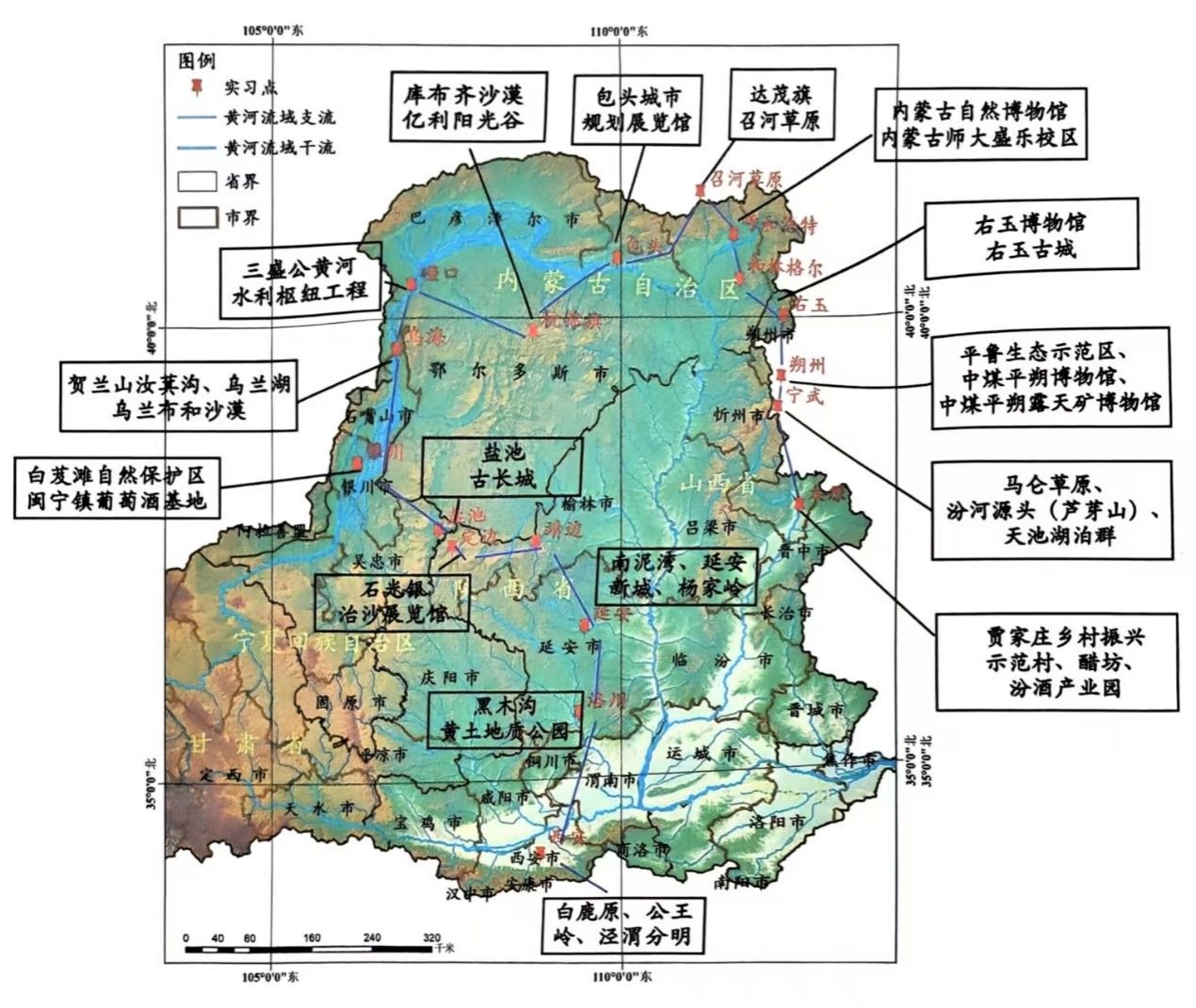 本届实习以“黄土黄沙黄河行,绿水青山中国梦”为主题,不仅是对黄河流域几字弯地区自然与人文的全面考察,更是一次让青年学子在山河之间观察、思考、与自然对话的征程。黄土高原的沟壑与梯田、沙地沙漠的固沙与绿化、黄河两岸的草原与山脉 ,师生们用半个月的时间,完成了一幅立体地理画卷的绘制。