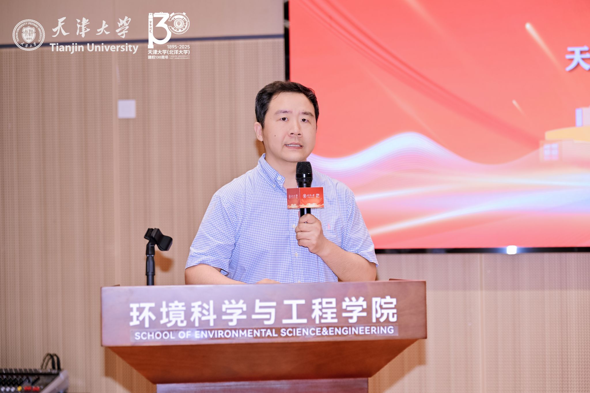 天津大学党委常委、副校长王天友代表学校致欢迎辞,他从1895年“兴学强国”的创校初心讲到今日“双一流”与新工科建设的累累硕果,点赞环境学院自2015年以来已培养600余名节能环保领军人才;2025年新增资源循环专题班,将以升级课程体系精准服务“双碳”战略,为国家高质量发展贡献“天大”力量。