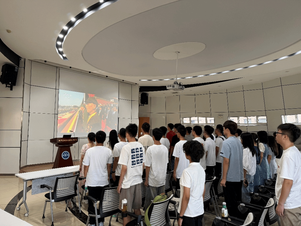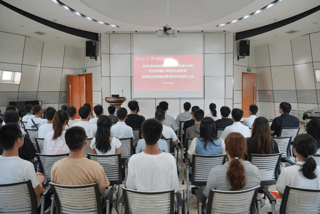 2025年9月3日是中国人民抗日战争暨世界反法西斯战争胜利80周年纪念日。上午9时,北京天安门广场隆重举行纪念大会,中共中央总书记、国家主席、中央军委主席习近平发表重要讲话并检阅部队。为了深入开展红色思政主题迎新教育,引导2025级新生厚植家国情怀、赓续红色基因,增强历史责任感和使命感,自动化学院组织在津的2025级本科新生于26教SEIE报告厅集中观看了中国人民抗日战争暨世界反法西斯战争胜利80周年纪念大会,学院党委书记李继平、辅导员秦天一和部分本科高年级迎新骨干一同参加了活动。