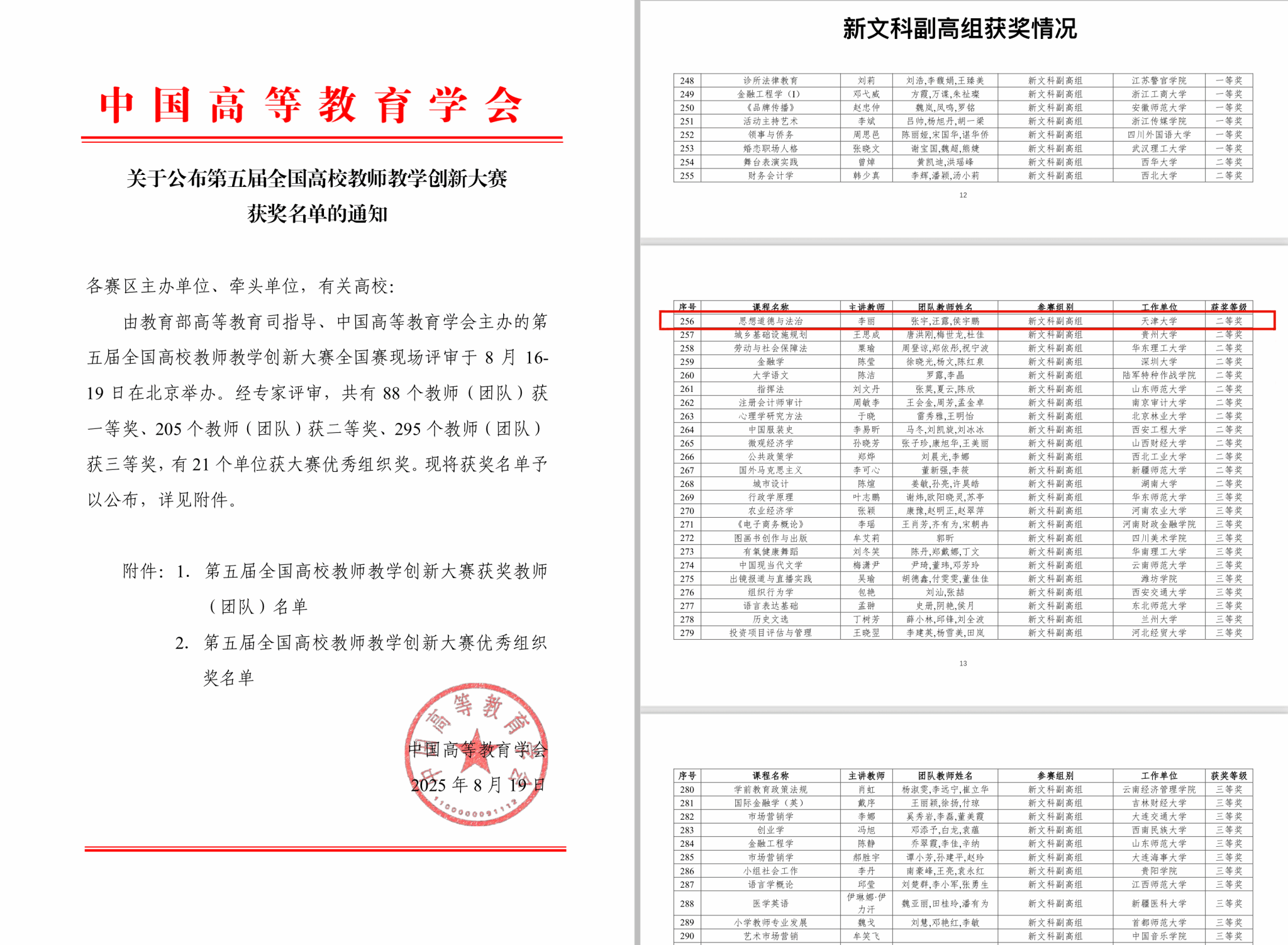 第五届全国高校教师教学创新大赛新文科副高组获奖情况