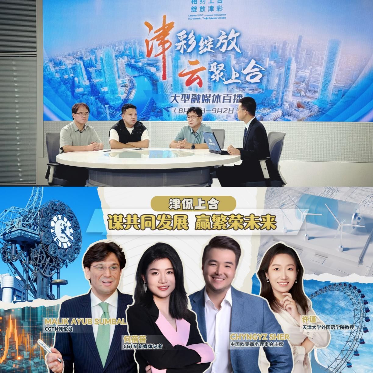 峰会前夕,外国语学院许谨教授在CHINA DAILY发表题为《Tianjin: Embracing the Shanghai Spirit, Shaping SCO's Shared Future》文章,并受邀参加CGTN的“谋共同发展,赢繁荣未来”主题“津侃上合”线上直播活动,积极参与营造上合峰会浓厚氛围。直播活动过程中,许谨教授回应了主持人关于“上海合作组织采取了哪些措施来发挥经济辐射带的作用?对天津产生了哪些具体影响?”“上合组织的绿色能源政策给成员国带来了哪些产业、民生方面的积极作用?”“中印经贸在上合框架下能有哪些发展潜力”等议题,通过与主持人和其他嘉宾的交流互动,在国际交流舞台上展现天大教师风貌。