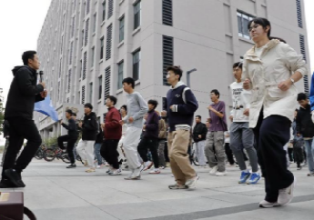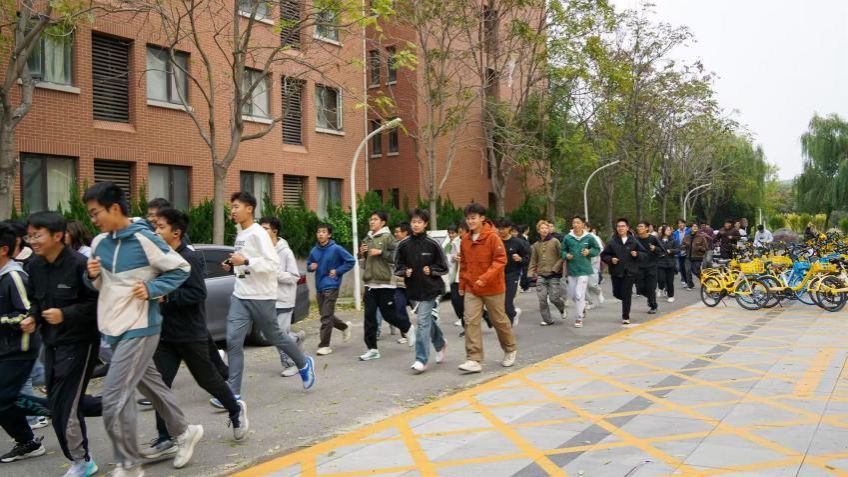 在秋日和煦的阳光下,同学们精神饱满、步伐整齐,老师们也热情参与其中,现场组织有序、气氛活跃,展现出微电子学院师生昂扬向上的精神风貌。