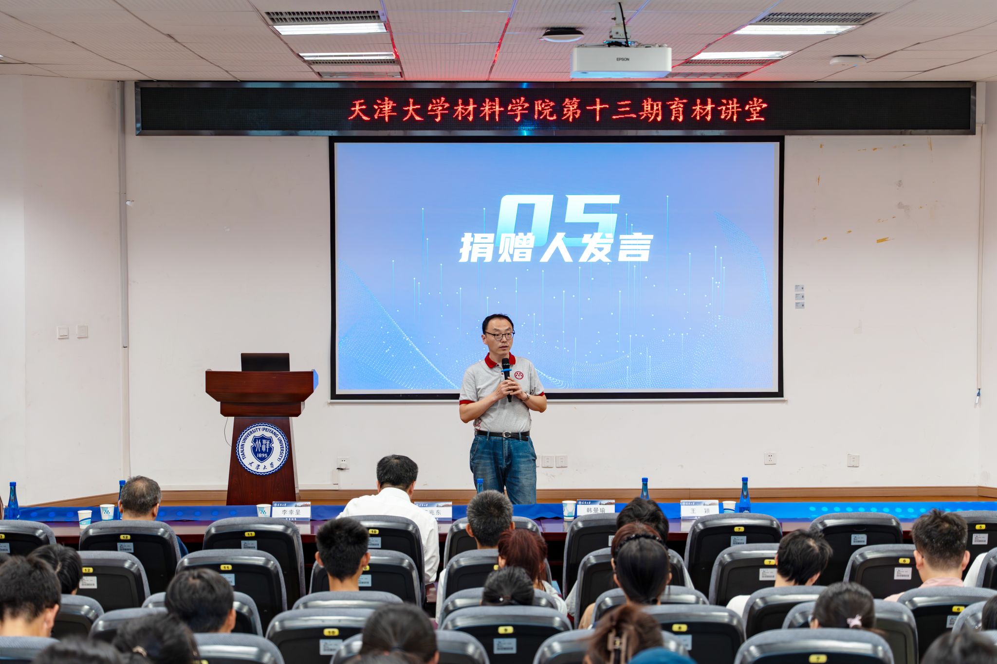 讲堂开篇,李幸呈校友便为学院带来一份特殊的礼物 —— 他受邀参与中央电视台采访,并在央视 10 套教育频道播出的人物专访《在天大的日子》影像资料,这份承载着个人成长与母校情怀的资料弥足珍贵。随后,他以自身成长轨迹为脉络,生动讲述了从材料专业起步的跨界探索之路:攻读科技英语双学位拓宽知识边界,进入食品行业后巧妙运用材料学知识实现技术突破,其团队创新性地采用纯钛合金打造吉他,让这份 “材料匠心” 亮相国际舞台。他用亲身经历证明,材料人拥有远超想象的跨界潜力,为在场学子打开了学科应用的新视野。