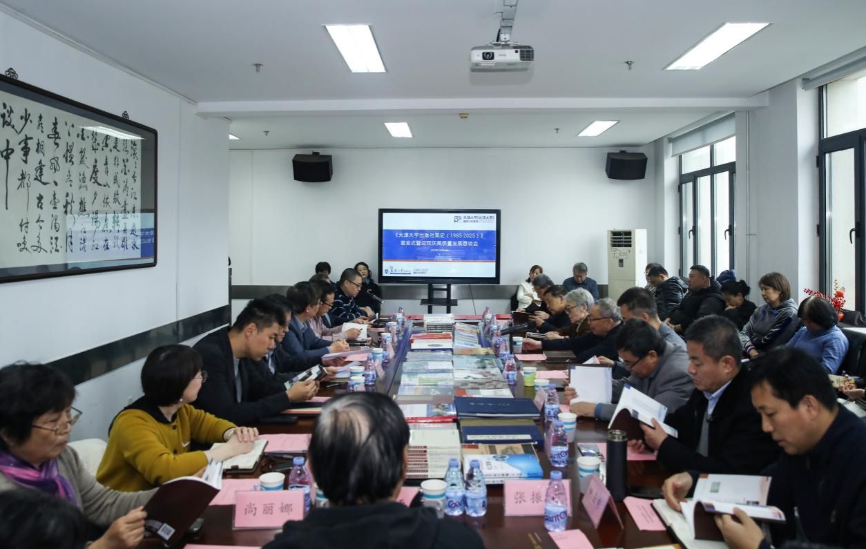 2025年10月31日上午,《天津大学出版社简史(1985—2025)》首发式暨“迎双庆”高质量发展恳谈会在天津大学出版社会议室隆重举行。天津大学资产经营有限公司董事长、总经理孙永利,出版社退休老领导杨风和、杨秀雯、高希庚,曾在出版社任职的原领导,期刊中心、档案馆相关负责人,出版社领导班子共同出席会议。