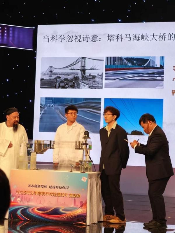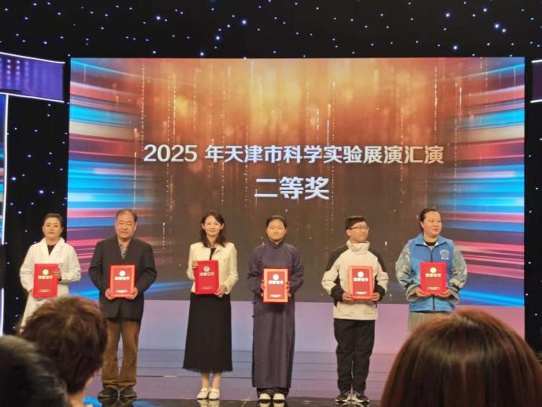 天津大学机械工程学院力学系姜楠教授和博士后、研究生组成的科普团队所创作表演的小品《诗与科学的交融》,在2025年天津市科学实验展演汇演中获得二等奖。