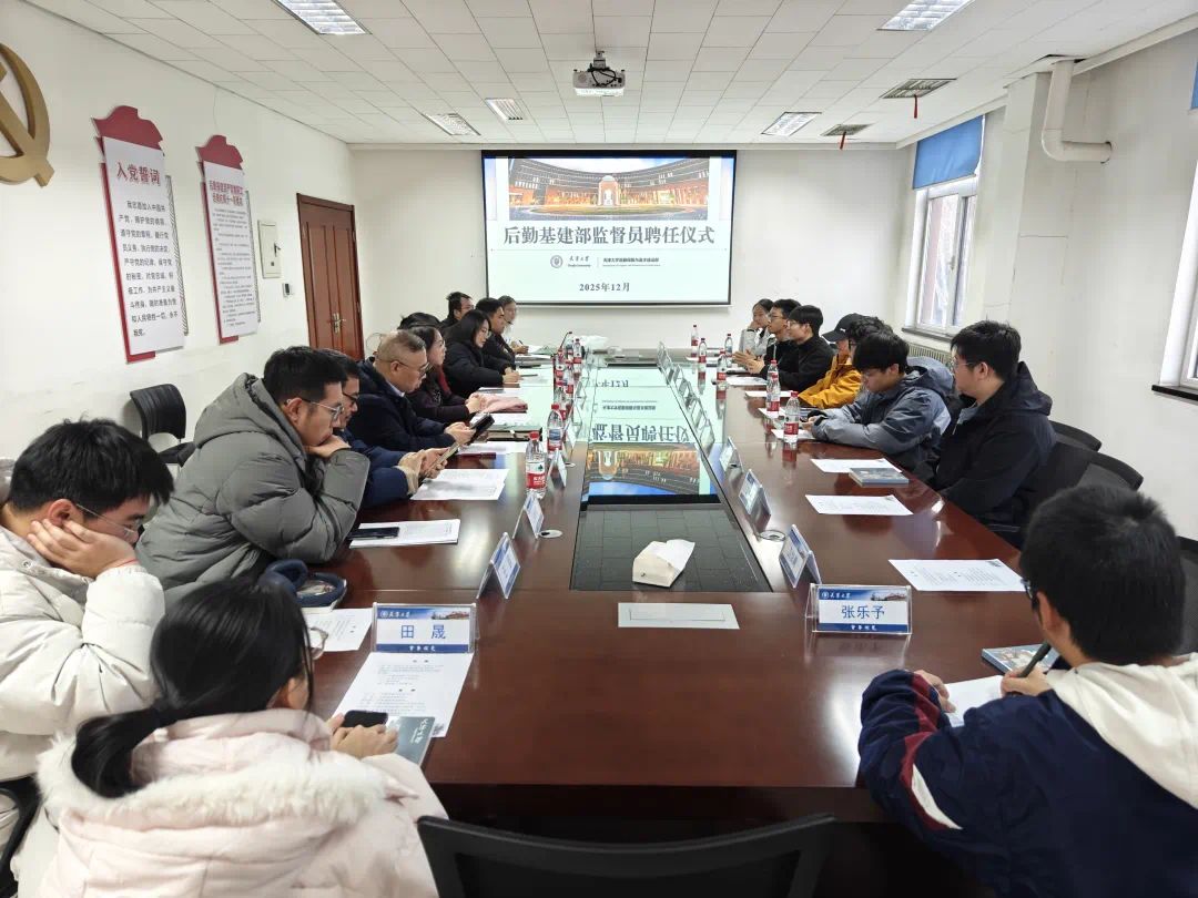 为深化后勤服务质量提升,畅通师生沟通反馈渠道,12月17日下午,天津大学后勤基建部举行2025-2026年度后勤服务监督员聘任仪式。后勤基建部党委书记汪菲,副部长张莹、路宝顺,相关科室负责人及10余名后勤服务监督员齐聚一堂,共同开启后勤服务监督工作新篇章。仪式由后勤基建部综合办公室主任纪清丽主持。