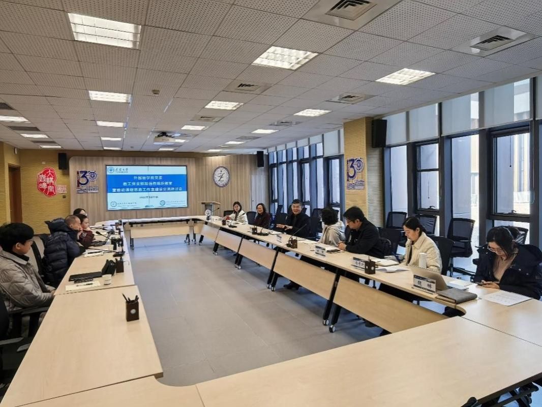 与业务融合“十项行动”,更好地发挥院级党组织在促进本研贯通人才培养、交叉学科建设和青年师生成长发展等重点工作中的政治功能和组织功能。在推动落实学校党委年度重点工作中有关提升思想政治工作科学化制度化规范化水平方面,针对外国语学院课程思政工作室建设这一核心议题,明确外国语学院“一体三翼五融合”的课程思政建设整体工作思路——以价值塑造、知识传授、能力培养为一体,聚焦队伍、课程、课堂三大关键要素,推动课程思政与校院联动、师资建设、服务新工科人才培养、资源整合、工作室平台搭建五方面紧密融合,并就外语“三进”工作专题学习研讨了有关学科课程思政教学要点研究、本研一体进阶式育人体系构建、课程思政教改立项推广、教师课程思政能力提升等重要内容。