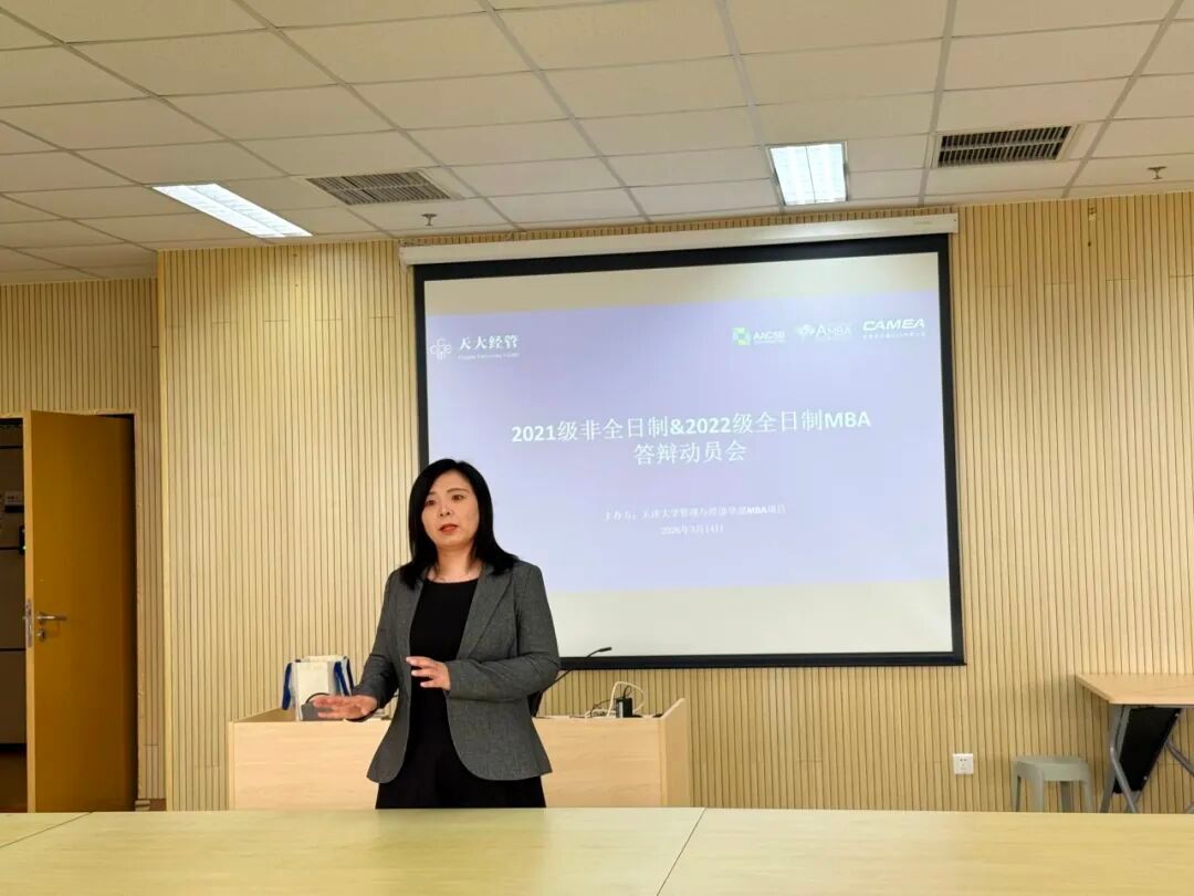 为扎实推进论文工作、保障答辩环节顺利完成,MBA/EMBA项目于3月14日上午组织召开了2021级非全日制与2022级全日制MBA答辩动员会。会上,老师与近三十位同学进行座谈,逐一关切论文进度、盲审准备及答辩安排,梳理关键流程节点,并就各类问题提供细致解答与务实建议,通过系统性支持为毕业之路奠定坚实基础。