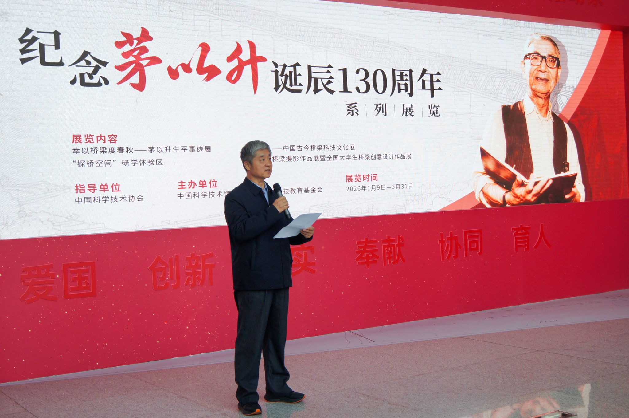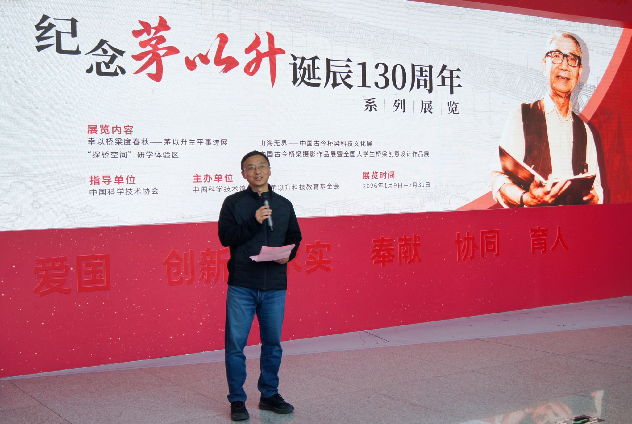 本次展览由中国科学技术馆与北京茅以升科技教育基金会联合主办,以“桥”为脉络,贯通历史、科技、艺术与未来,通过珍贵史料、实物展品、沉浸式影像等多种形式,全面展现茅以升先生科学人生与卓越贡献,系统回顾中国桥梁事业从传统榫卯技艺到现代工程科技的发展历程,为全体师生带来一场思想深刻、内容丰富的精神洗礼。