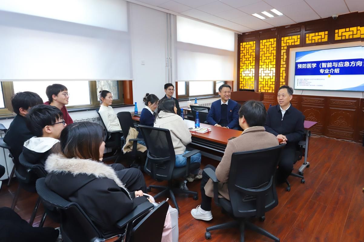 与教学优势,探索人工智能、大数据技术与公共卫生的融合路径,培养面向未来的复合型能力;在应急维度,依托学院在国内率先开展医学救援与卫生应急研究的深厚积淀,聚焦国家应急医学紧缺人才培养需求,强化实景演练、应急处置等实践教学环节,着力培养“懂预防、通智能、善应急”的复合型人才。同时,樊毫军院长结合国家卫健委相关规划、行业发展动态及学校人才培养成效,详细分析了专业升学与就业前景。