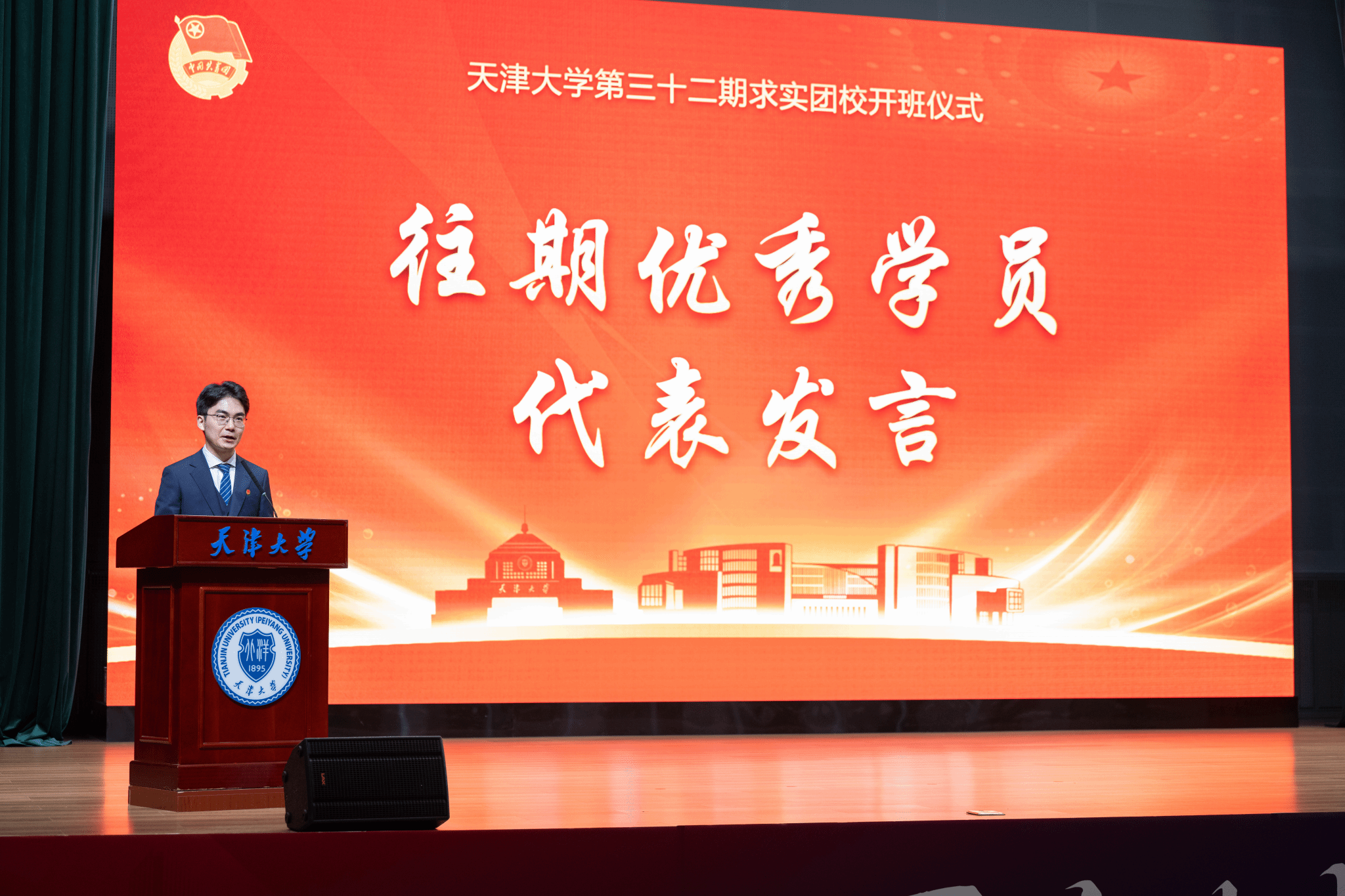 与学生工作有机结合,为服务“健康中国”等国家战略贡献青春力量。马克思主义学院2022级本科生、天津市第八期青马工程高校班学员代表李思潼则分享了自己从初团启航、在领航班淬炼、成长为天津市青马工程学员的成长之路,讲述了从理论积淀到实践转化的心路历程。她以亲身经历诠释“求实”真谛——知行合一、服务社会,并鼓励新学员在天大深厚的土壤中高擎使命,在民族复兴伟业中展现青年担当。