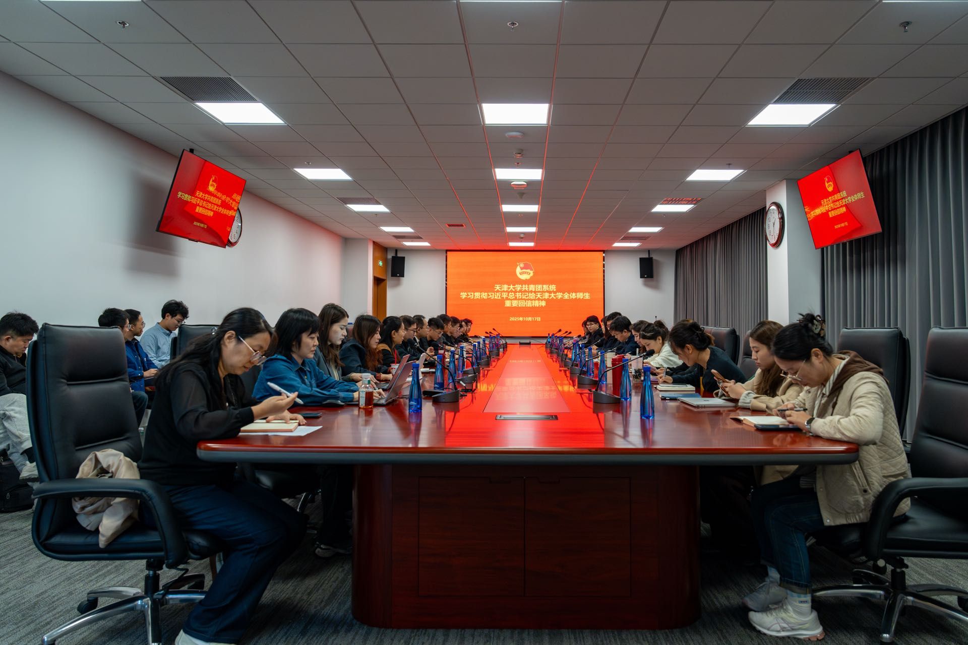 10月17日,天津大学召开院级团组织书记会议,深入学习习近平总书记给天津大学全体师生重要回信精神,研究部署贯彻落实工作。校院两级团组织负责人、校团委全体成员,天津市学联主席,校学生会、研究生会学生代表参加会议。