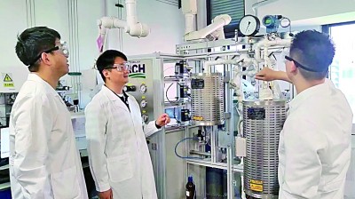 天津大学新能源化工团队在实验室内做催化剂性能测试研究。新华社发