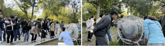 全体党员实地参观了人民公园内集中展示的十余处零碳微花园作品。这些作品作为同期“健康π空间”主题活动的核心展示,充分体现“旧物新生,创意改造”的无废建造理念。党员们认真观摩设计细节与技术路径,与天津大学建筑学院参展团队深入交流,通过身临其境的体验,加深了对零碳低碳理念实际应用的理解,增强了建设宜居城市、提升人民福祉的专业自觉。