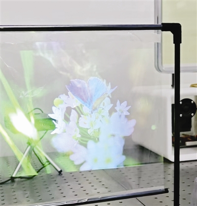 记者眼前这一款厚度仅有0.01毫米、投射出绚烂画面的透明显示屏,仿佛科幻电影中凭空出现的“全息影像”,呈现着科技的含金量。