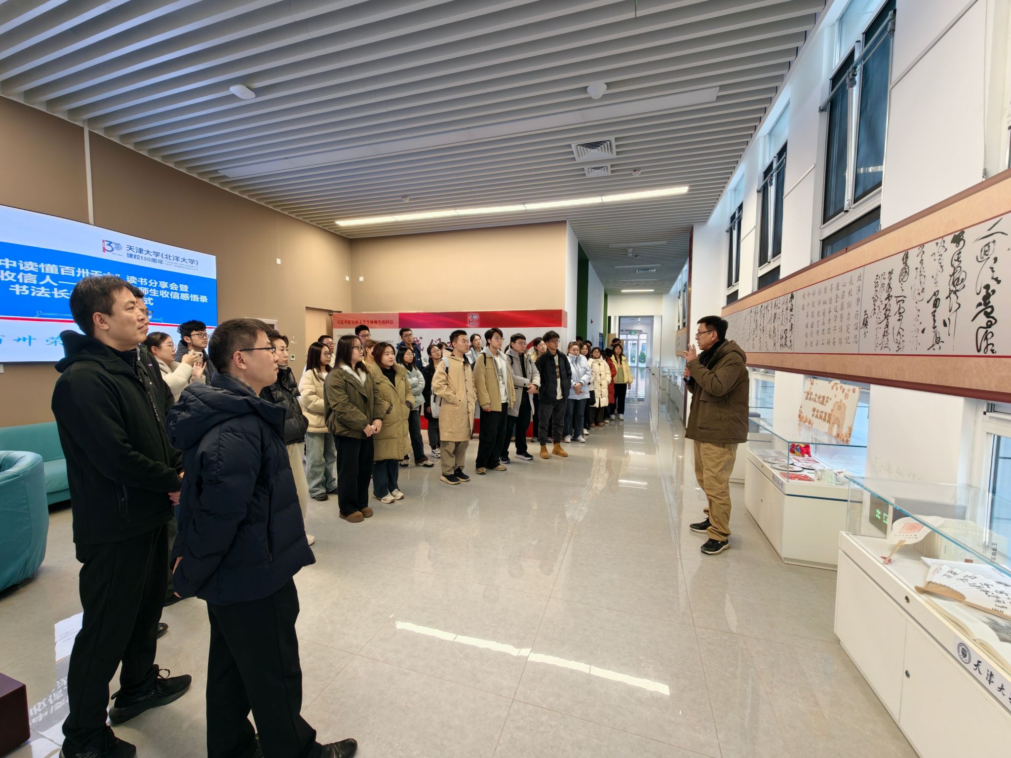 12月4日,“在书中读懂百卅天大”读书分享会暨“我们都是收信人——天津高校师生收信感悟录书法长卷展”启动仪式在三问社区成功举办。学工部副部长潘刚、图书馆副馆长孟少卿、人文艺术学院党委副书记、副院长王用源,王学仲艺术研究所所长孙列与师生代表们共同参与。