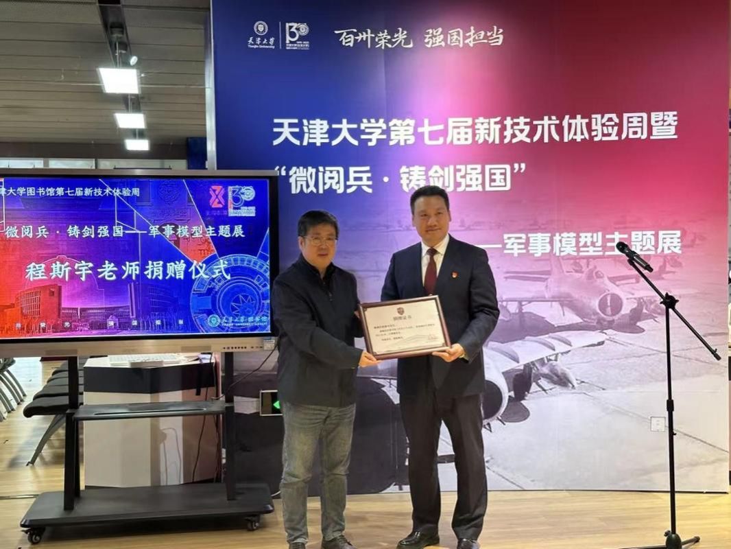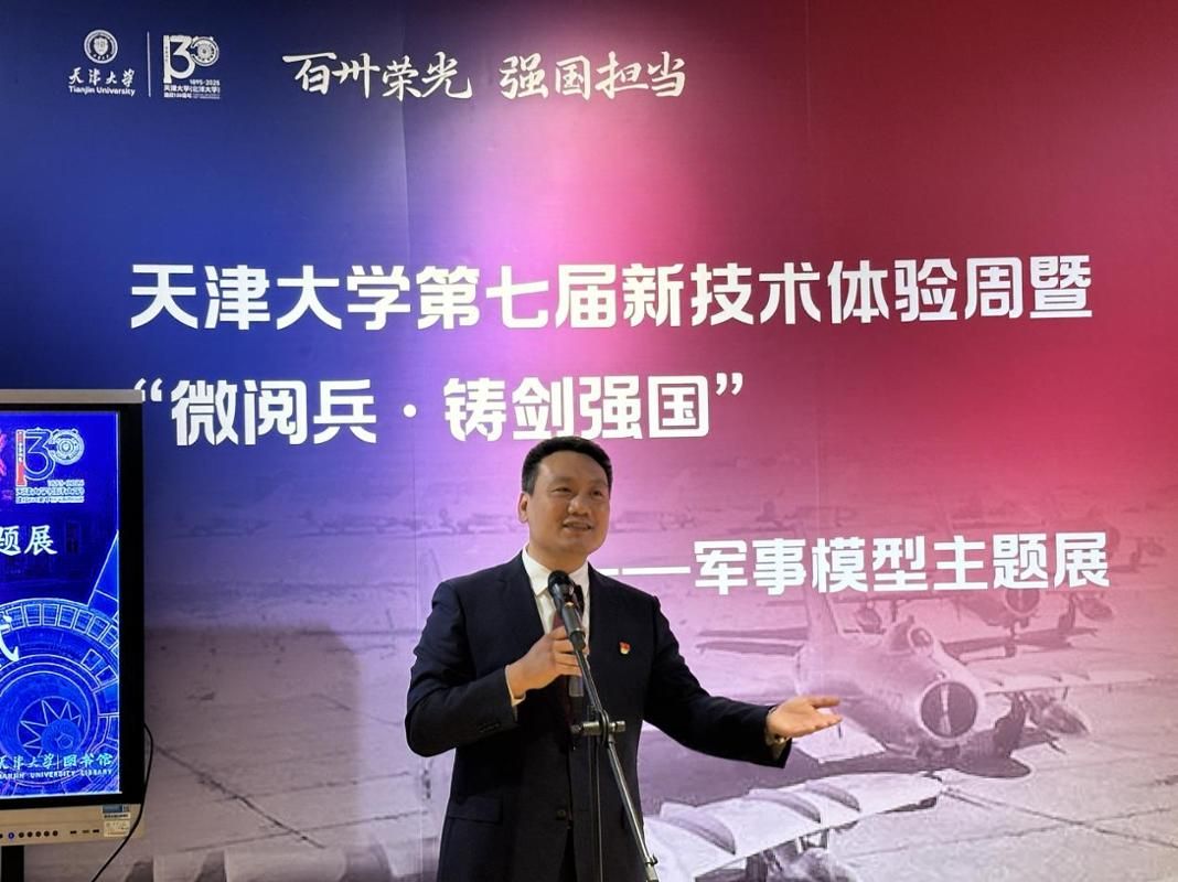 2025年12月12日下午,天津大学图书馆第七届新技术体验周曁“微阅兵·铸剑强国”军事模型主题展在郑东图书馆新技术体验区开幕。本次活动是在纪念中国人民抗日战争暨世界反法西斯战争胜利80周年背景下,进一步贯彻落实习近平总书记关于加强全民国防教育的重要论述,弘扬爱国主义精神,激励天大学子秉承“兴学强国”使命,牢记习近平总书记给全体师生回信的殷殷嘱托,聚焦国家重大战略需求,在科技报国的道路上笃行不怠。